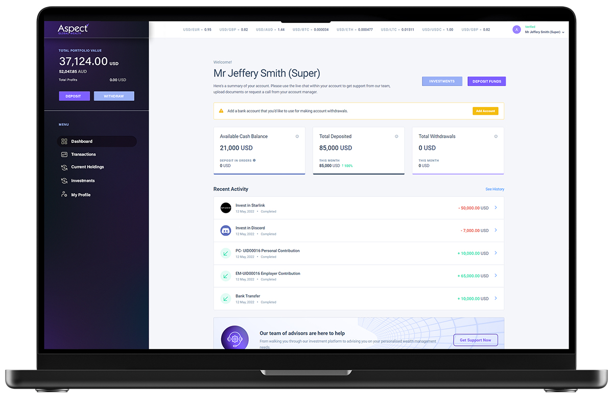 Whether you're tracking performance, rebalancing your portfolio, or exploring new opportunities, our platform keeps you connected and informed at every step.